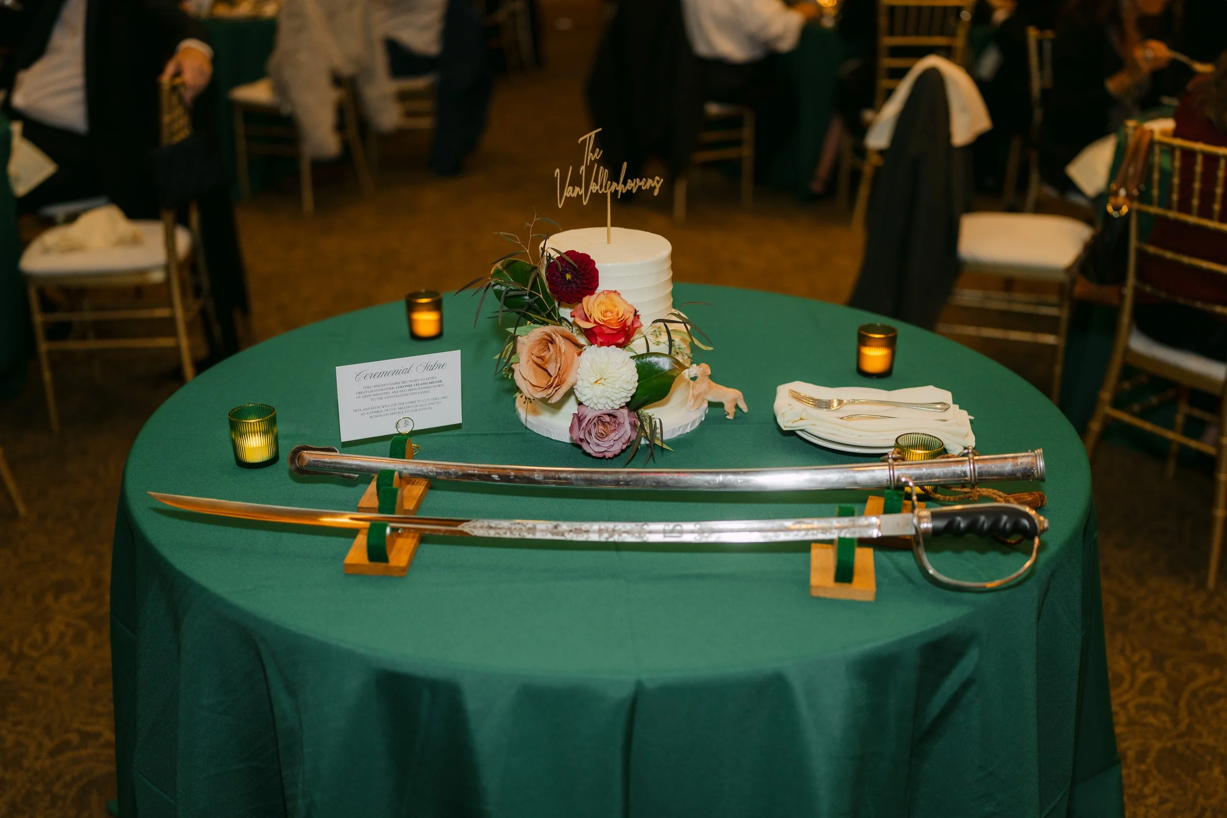 The cake was cut using Pete’s grandfather’s WWII sword, an unforgettable tribute. A surprise groom’s cake recreated from Elyse’s parents’ own wedding delighted her father. Pete honored a Southern tradition by digging up a buried bottle of whiskey. An anniversary dance brought generations together.
